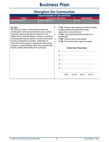 offering programming and exposure to cultural experiences • 3 Qtr.: Develop Culture Pass program