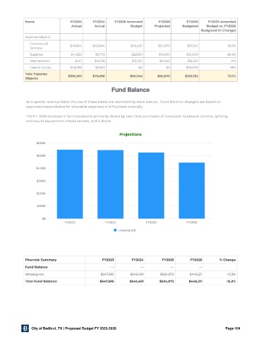City of Bedford, TX | Proposed Budget FY 2025-2026 Page 104