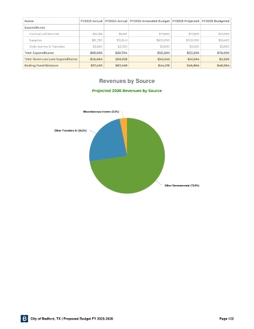 City of Bedford, TX | Proposed Budget FY 2025-2026 Page 122