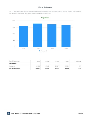 This is a special revenue fund that requires the approval of the Beauti cation Commission to approve projects. Fund balance
