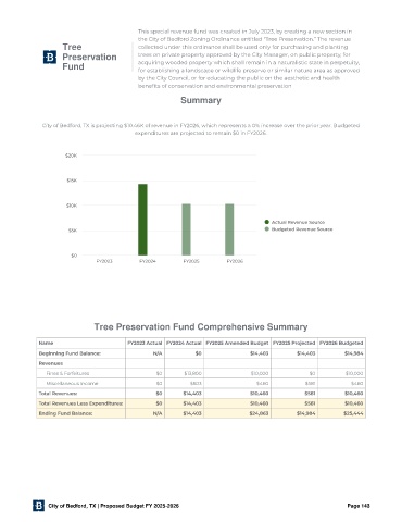 the City of Bedford Zoning Ordinance entitled "Tree Preservation.” The revenue