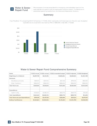Water & Sewer Repair Fund Comprehensive Summary
