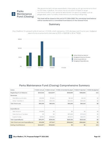 Parks Maintenance Fund (Closing) Comprehensive Summary