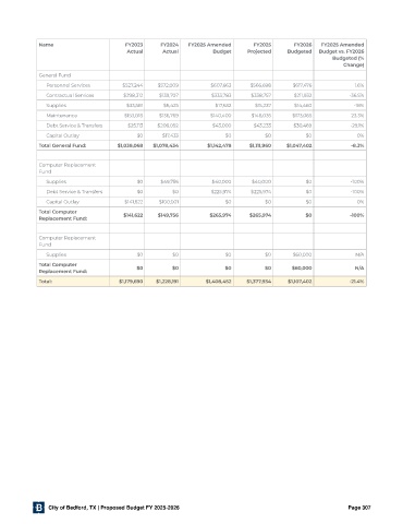 City of Bedford, TX | Proposed Budget FY 2025-2026 Page 307