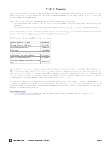 rate to fund the FY 2025-2026 budget is $0.526212 per $100 assessed valuation, which was presented to the City Council for