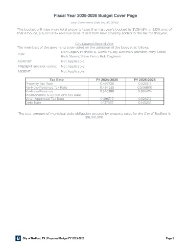 City of Bedford, TX | Proposed Budget FY 2025-2026 Page 5