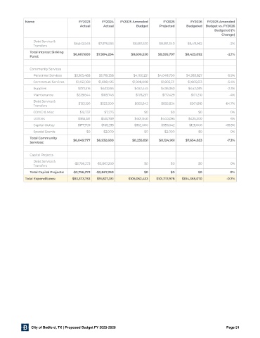 City of Bedford, TX | Proposed Budget FY 2025-2026 Page 51