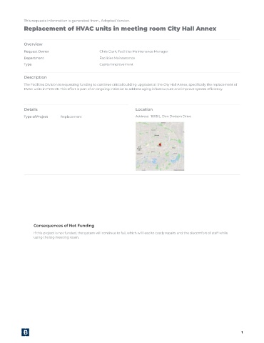 The Facilities Division is requesting funding to continue critical building upgrades at the City Hall Annex, speci cally the replacement of
