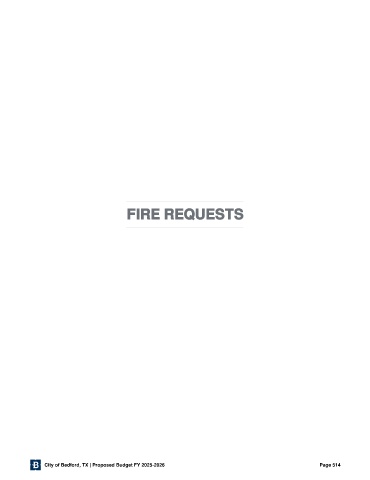 FIRE REQUESTS City of Bedford, TX | Proposed Budget FY 2025-2026 Page 514