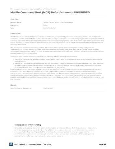 Mobile Command Post (MCP) Refurbishment - UNFUNDED