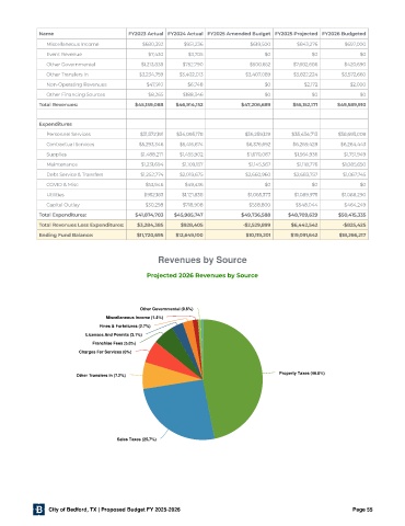 City of Bedford, TX | Proposed Budget FY 2025-2026 Page 55