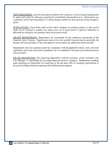 City Manager, is responsible for providing financial reports to grantors. Departments handling