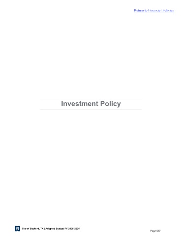 Return to Financial Policies Investment Policy City of Bedford, TX | Adopted Budget FY 2025-2026 Page 597