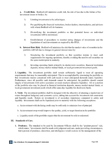 a. Credit Risk. Bedford will minimize credit risk, the risk of loss due to the failure of the
