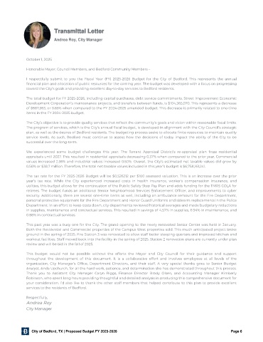 City of Bedford, TX | Proposed Budget FY 2025-2026 Page 6