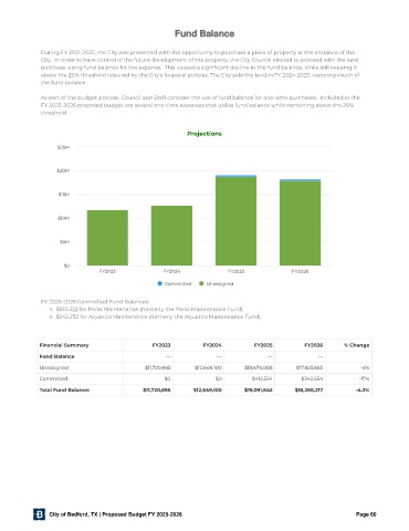 above the 20% threshold required by the City's nancial policies. The City sold the land in FY 2024-2025, restoring much of