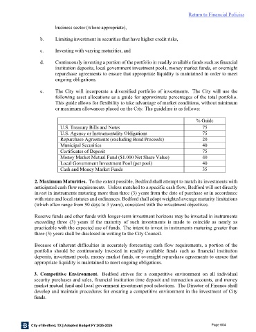 with state and local statutes and ordinances. Bedford shall adopt weighted average maturity limitations