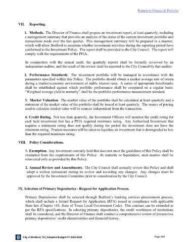 Primary Depositories shall be selected through Bedford’s banking services procurement process,
