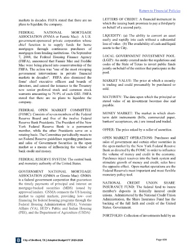 markets in decades. FHFA stated that there are no LETTERS OF CREDIT: A financial instrument in