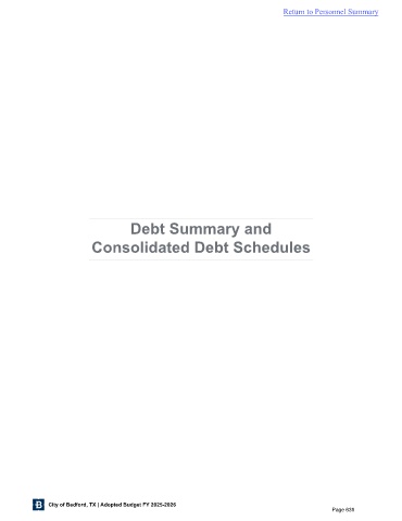 Return to Personnel Summary Debt Summary and Consolidated Debt Schedules City of Bedford, TX | Adopted Budget FY 2025-2026 Page 636