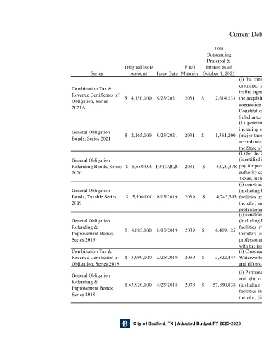 Series Amount Issue Date Maturity October 1, 2025 Purpose of Debt Supporting?
