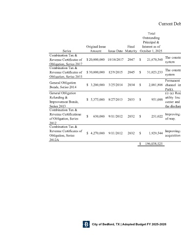 Series Amount Issue Date Maturity October 1, 2025 Purpose of Debt Supporting?