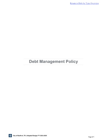 Return to Debt by Type Overview Debt Management Policy City of Bedford, TX | Adopted Budget FY 2025-2026 Page 671