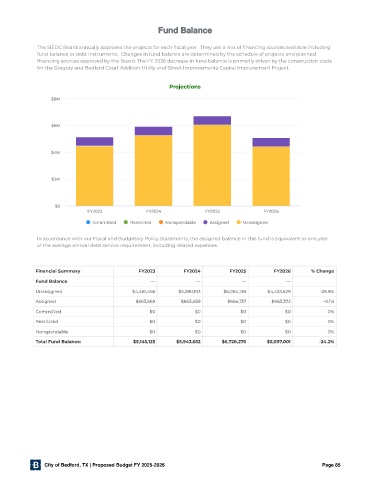 nancing sources approved by the Board. The FY 2026 decrease in fund balance is primarily driven by the construction costs