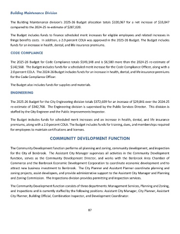 The Community Development function performs all planning and zoning, community development, and inspection
