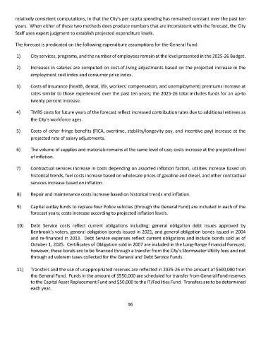 The forecast is predicated on the following expenditure assumptions for the General Fund: