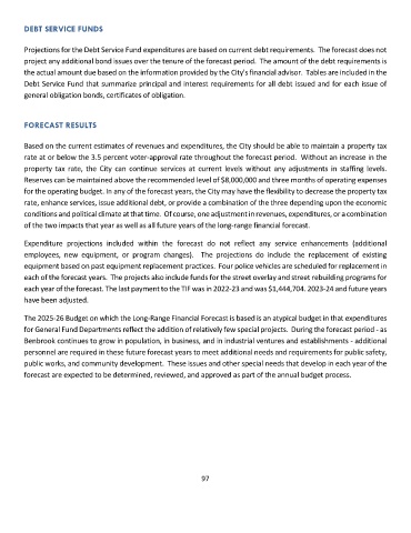 Projections for the Debt Service Fund expenditures are based on current debt requirements. The forecast does not