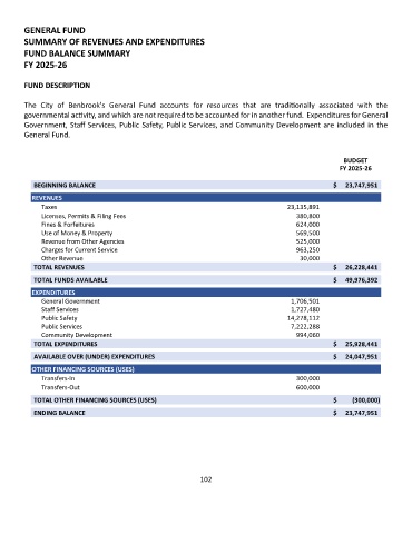 The City of Benbrook's General Fund accounts for resources that are traditionally associated with the