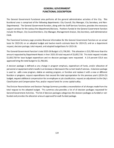 General Government Activities. The list of decision packages categorizes the decision packages as funded or not-