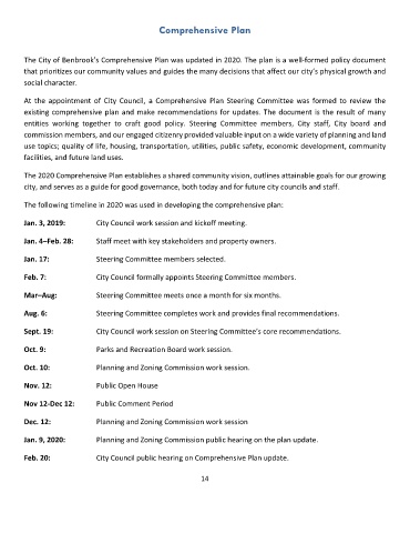 The following timeline in 2020 was used in developing the comprehensive plan: