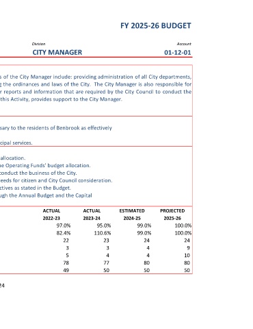 affairs of the City of Benbrook. The Management Analyst, also budgeted within this Activity, provides support to the City Manager.