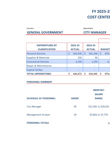 City Manager 49 $15,395 to $20,631 $ 247,576 1.0 1.0 1.0