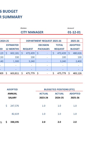 City Manager 49 $15,395 to $20,631 $ 247,576 1.0 1.0 1.0