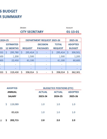 City Secretary 34 $7,406 to $9,924 $ 119,089 1.0 1.0 1.0