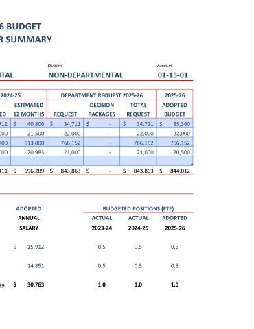 GENERAL GOVERNMENT NON-DEPARTMENTAL NON-DEPARTMENTAL 01-15-01