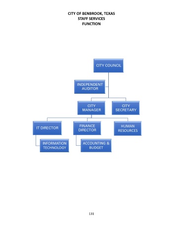 CITY OF BENBROOK, TEXAS STAFF SERVICES FUNCTION 131