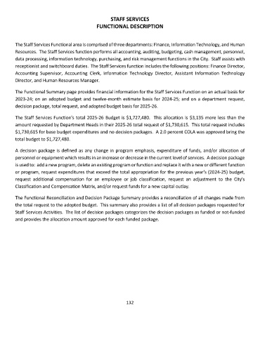 Staff Services Activities. The list of decision packages categorizes the decision packages as funded or not-funded