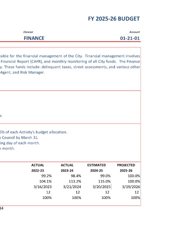 the administration of bonded debt, preparation of the Comprehensive Annual Financial Report (CAFR), and monthly monitoring of all City funds. The Finance