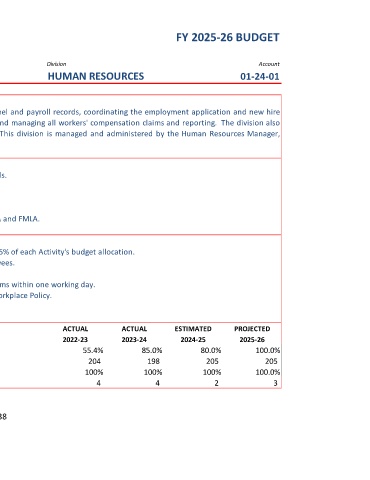 DIVISION SUMMARY FY 2025-26 BUDGET