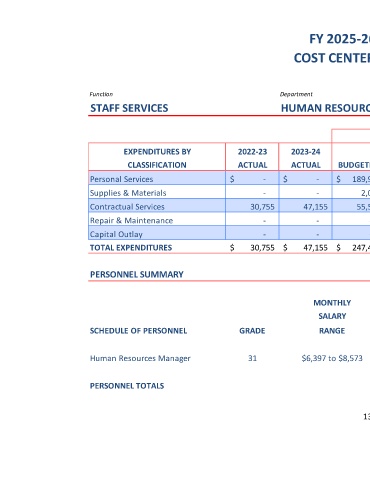 Human Resources Manager 31 $6,397 to $8,573 $ 91,141 1.0 1.0 1.0