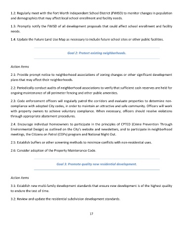 1.3: Promptly notify the FWISD of all development proposals that could affect school enrollment and facility