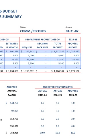 CLASSIFICATION ACTUAL ACTUAL BUDGETED 12 MONTHS REQUEST PACKAGES REQUEST BUDGET