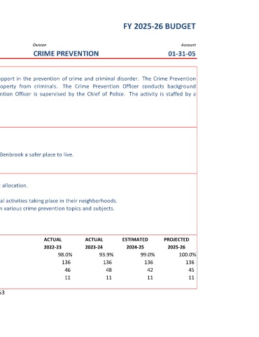 investigations of perspective police department employees. The Crime Prevention Officer is supervised by the Chief of Police. The activity is staffed by a