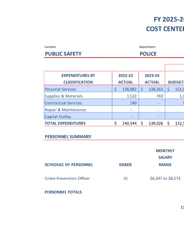Crime Prevention Officer 31 $6,397 to $8,573 $ 102,873 1.0 1.0 1.0