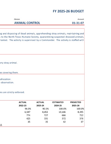 caring for the animals in the City animal shelter, transferring unclaimed animals to the North Texas Humane Society, quarantining suspected diseased animals,