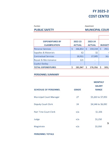 Municipal Court Manager 27 $5,263 to $7,053 $ 84,634 1.0 1.0 1.0